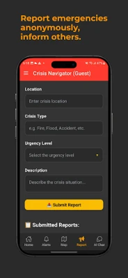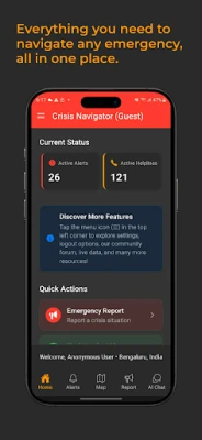 Whether you're facing a natural disaster, conflict situation, or personal emergency, Crisis Navigator provides the tools, information, and community support you need to navigate through and emerge stronger.